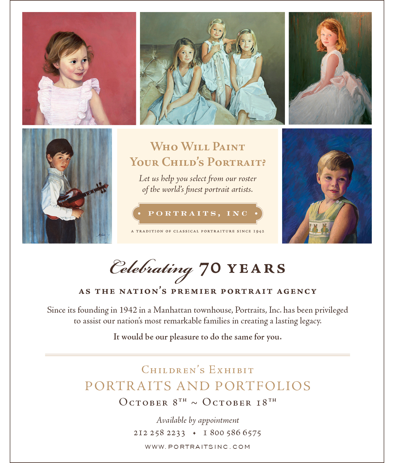 Portraits, Incorporated will host a fall children's portrait exhibit in New York from October 8th until October 18th. For more information or to schedule an appointment, call (212) 258-2233 or 1(800) 586-6575.