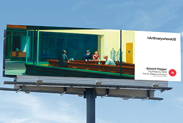 A nationwide movement celebrating America's artistic legacy may soon be coming to a city near you. Beginning August 4, 2014, Art Everywhere US will kick off a new campaign transforming billboards, shopping malls, movie theaters, subway stations, and more into a free, open-air exhibition in cities around the country. In April, the public was invited to vote for their favorite works of American art to be included in the exhibition, and 58 artworks were selected in an official presentation in June. The artwork receiving the most votes was Nighthawks by Edward Hopper (pictured above).