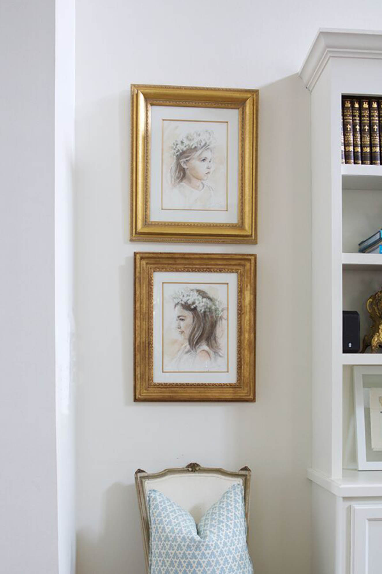 The purpose of a frame is to help your portrait stand out in a room, while also creating cohesion between the portrait and its setting. Your painting shouldn’t blend into the room, nor should it be obtrusive.