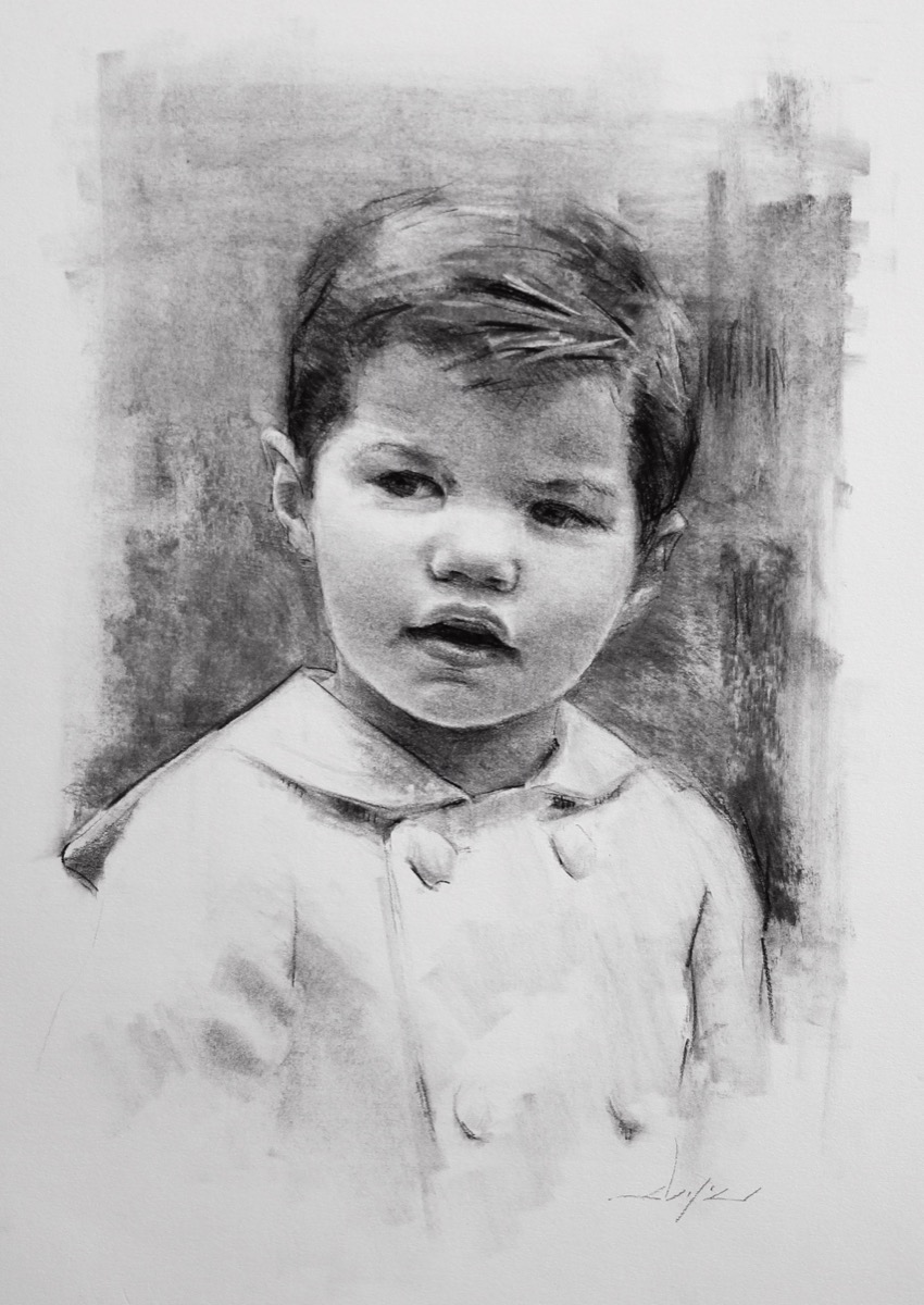 Using charcoal made from charred wood, early artists captured the essential aspects of their lives on cave walls. Today, charcoal drawings still follow a similar principle - broad lines capture only the most important features of a subject rather than the minute details. Under expert hands, charcoal can be used to create multi-tonal, beautifully blended portraits that create a sense of movement and a feeling of levity.