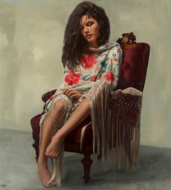Our contemporary mindset separates “figurative painting” and “portraiture” as distinct genre types. It follows that we then view these works with a predetermined set of expectations that influences what we will allow ourselves to see. I get it—life is messy—we want our art in neat and tidy categories. So we want portraits that aim to capture a sitter’s likeness and, to keep the work’s focus on the face, we prefer simple compositions and conservative poses. A figurative painting on the other hand can fly with artist fancy—because our collective expectations are largely non-existent. This is both a good thing and a bad thing. The good news is that we can view the work with fresh and open eyes. The bad news is that we have little to go on to make an aesthetic judgment. But hey, we’re not to blame—contemporary visual culture is somewhat lacking on the subject of figurative art.