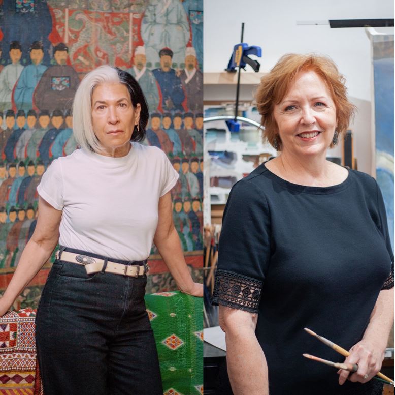Sharon Sprung in her Brooklyn studio (Left) and Carol Baxter Kirby in her Atlanta studio (Right) / Photo by Aaron Beane