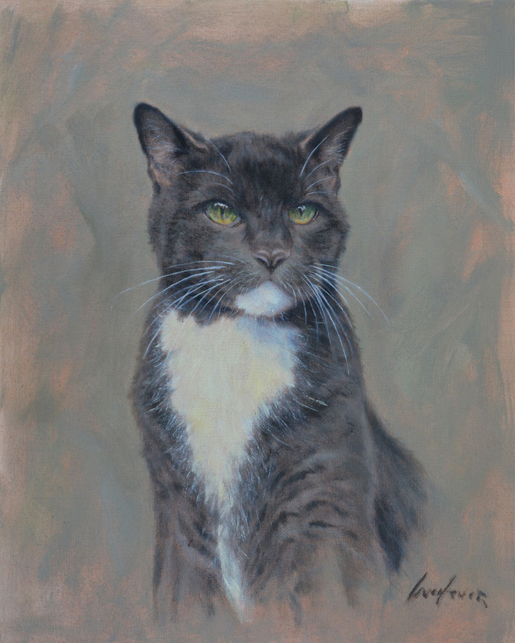 Like human portraiture, pet portraiture strives to capture something true and genuine about the subject. When Mr. Woolever is preparing for a portrait, he likes to spend time with the animal. Whether the subject is a dog, cat, horse, or hawk, he studies how the animal behaves.