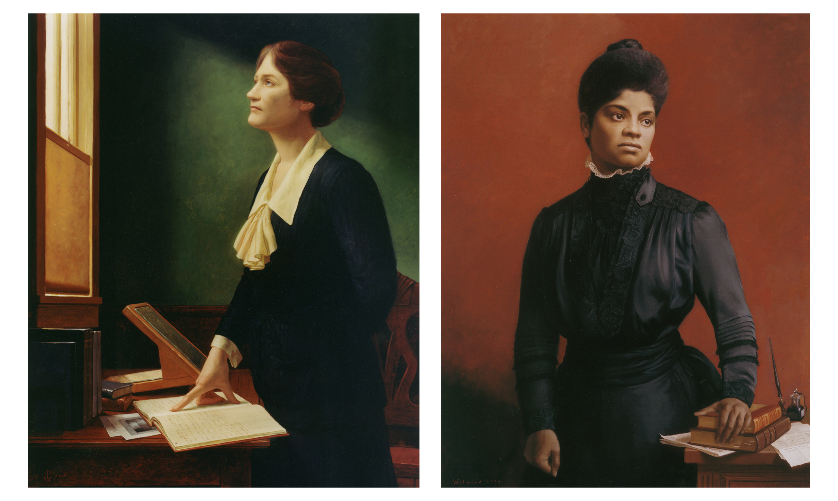 Watwood’s portrait of Cecilia Payne Gaposchkin, Ph.D. (left), and Ida B. Wells (right)