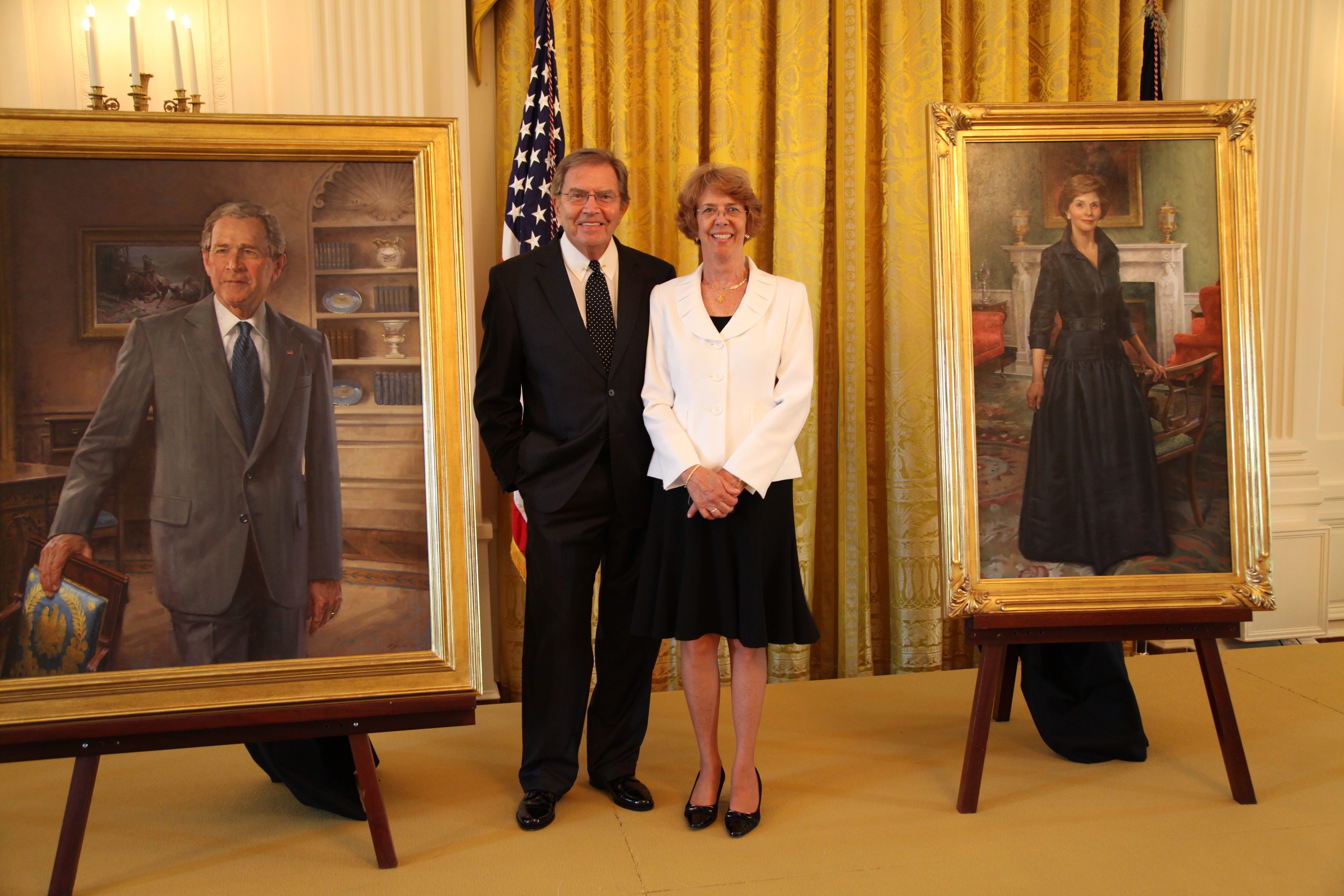 John Howard Sanden (1935-2022) was a lecturer on portraiture at the Art Students League of New York for 25 years. He was the author of five books on portrait painting and has been widely recognized as one of the nation’s foremost portrait artists. He completed more than 450 portraits of prominent figures in American public, professional and business life. Above are Sanden and his wife, Elizabeth, at the unveiling of John Howard Sanden's official White House portraits of former President George W. Bush and First Lady Laura Bush, unveiled at the White House on May 31, 2012.