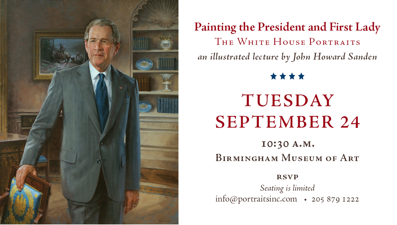 One of our most popular lectures, "Painting the President and First Lady: The White House Portraits," by John Howard Sanden is coming to Birmingham, home to our corporate headquarters. The event will take place at the Birmingham Museum of Art on Tuesday, September 24th at 10:30 a.m.