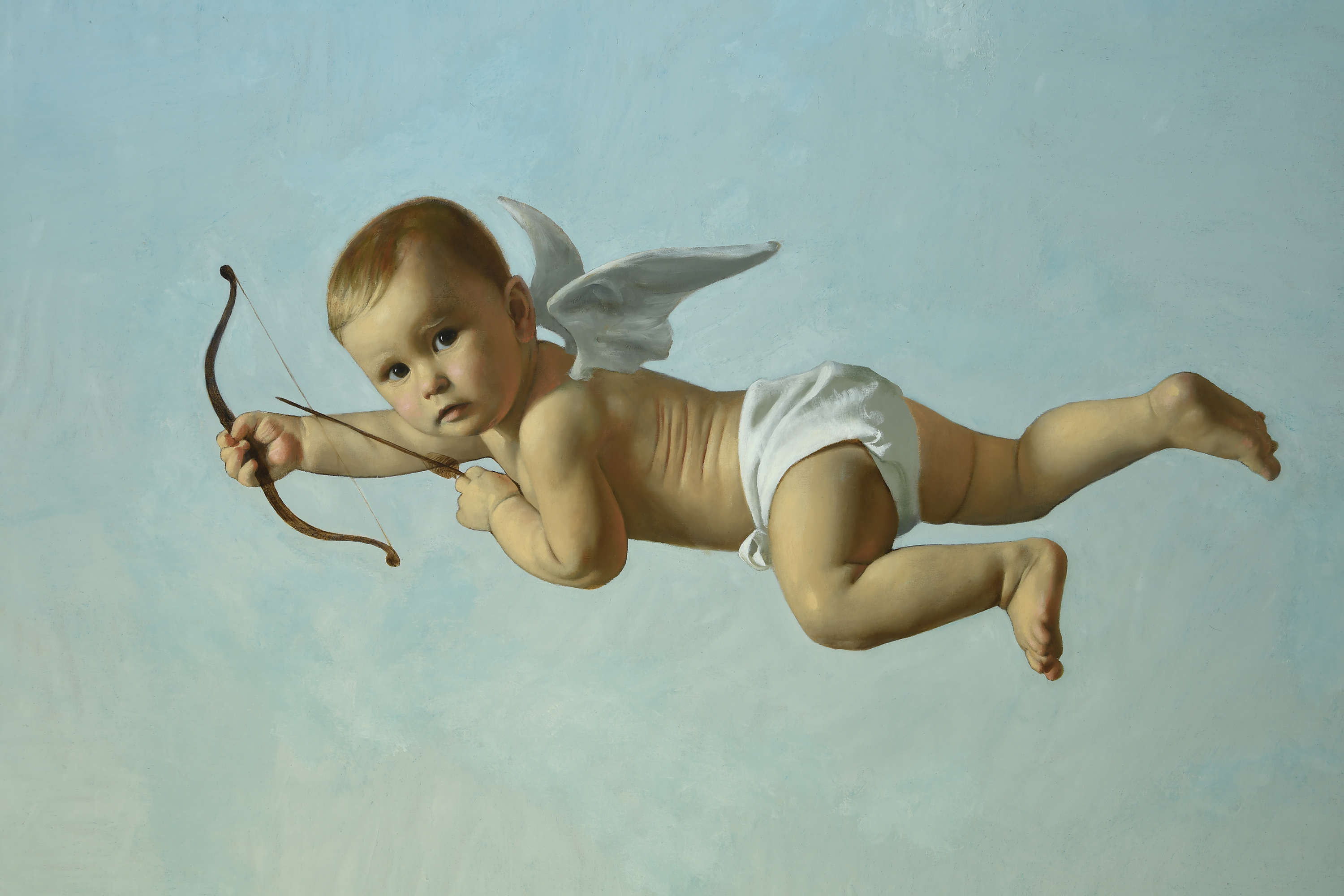 All commissioned fine art portraits are rooted in a singular moment in time; however, there are milestones and scenes that stand out among the rest. Early in life or the life of a family, this usually comes in the form of the birth of a child. While most portraits are not created until the age of 5 or 6 years to take advantage of the development of identifying features, sometimes it can be advantageous to celebrate this new life or stage of life. During this time, it is charming when the portrait is looser in style, hinting at the fragility and unfettered emotion of a young child. However, who is to say you can't focus that palpable energy into a strikingly detailed and imaginative portrait, such as this child-of-an-artist-turned-cherub, seen below?
