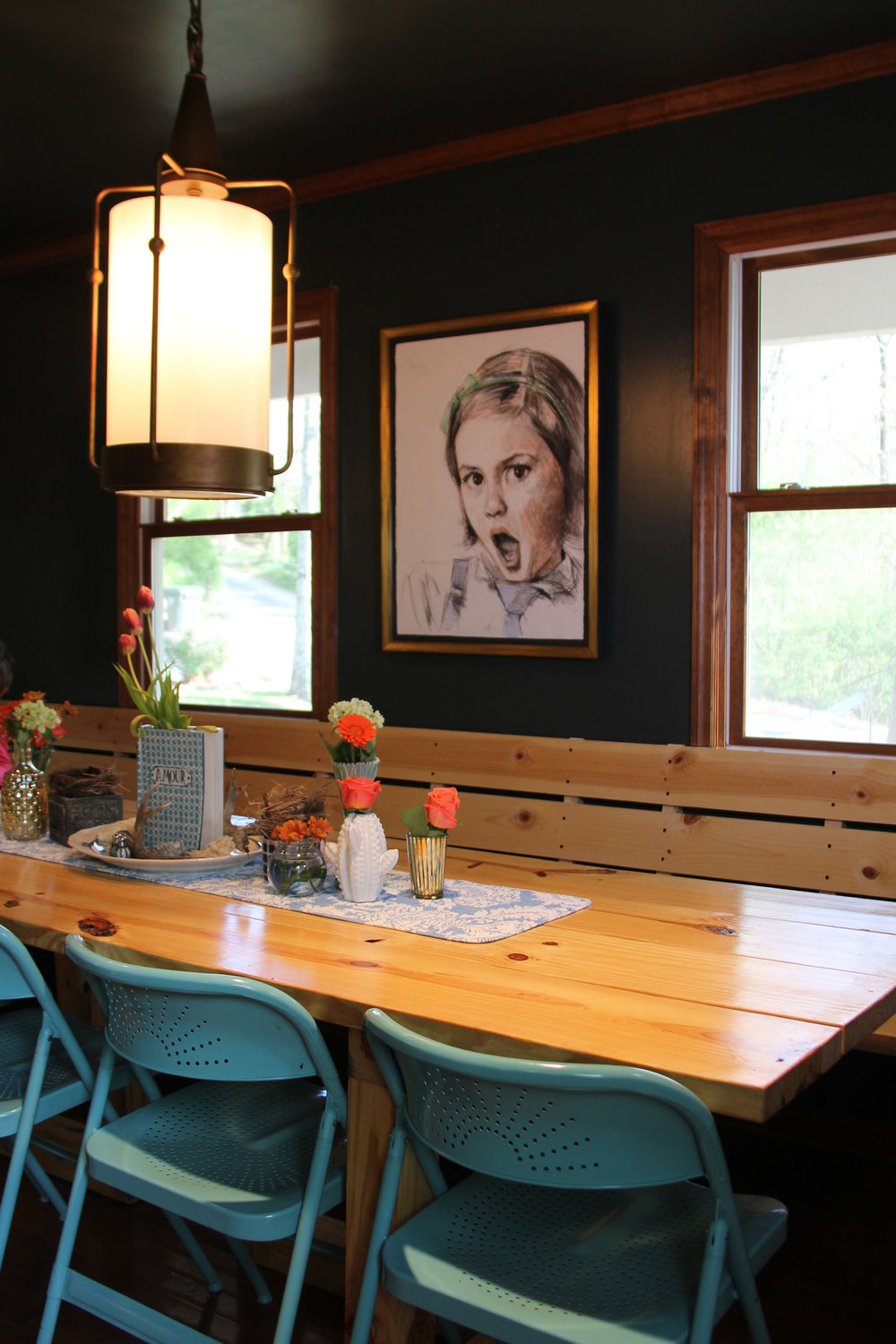 Rather than mounting a large portrait on the wall, set it on the floor, the mantle, or on a sofa table for a relaxed, cozy feeling.