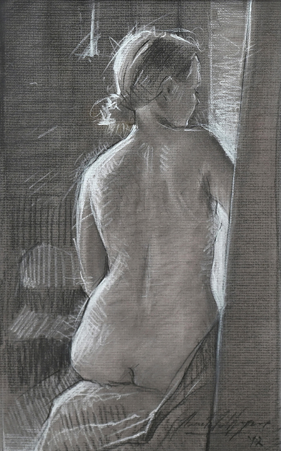 Charcoal and white conte on paper